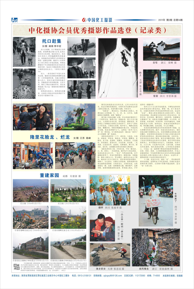 2011年第2期 来源: 时间:2022-07-27 协会动态更多 著名摄影家王洪峰《吾心﹒飞翔》鸟类专题摄影讲座 让中化摄协会员心随翱翔 11/21 中国化工摄影家协会天津分会 举办“茶淀杯”玫瑰葡萄飘香摄影展 11/17 中国化工摄影家协会山东分会在东营正式成立 10/02 中国化工摄影家协会四川雅安名山创作基地正式挂牌 09/23 名家讲座 09/18 新闻资讯更多 第十五届中国摄影艺术节 中国化工摄影家协会作品展览(二) 11/27 第十五届中国摄影艺术节 中国化工摄影家协会作品展览(一) 11/27 影鉴中国式现代化 见证汽车智造“新质生产力” 10/14 中国化工摄影家协会 召开“参加第十五届中国摄影艺术节”参展作品 评审会 09/24 关于组织参加第十五届中国摄影艺术节的通知 09/02 在线影展更多 中国化工摄影家协会第二届摄影艺术展航拍类获奖作品 中国化工摄影家协会第二届摄影艺术展纪录类获奖作品 中国化工摄影家协会第二届摄影艺术展风光类获奖作品